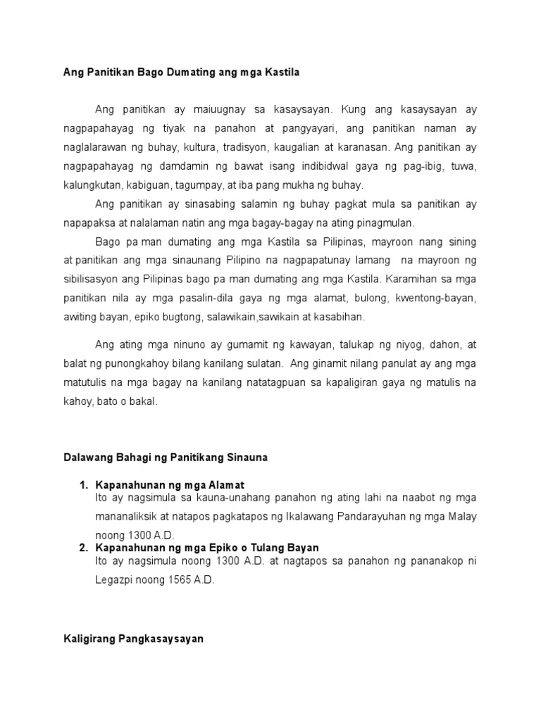 11012012 Pilipinas bago dumating ang mga Kastila January 11 2012 Bago pa man dumating ang mga Kastila noong unang panahon ang mga Negrito o Ita Intsik Persiano Bumbay Malacca Indones at Malay ang siyang mamamayan ng Pilipinas. Sports Education bowsandarrows Follow Sports Education Recommended. Panitikan ang nagpapahiwatig ng tunay na pagkalahi natin.